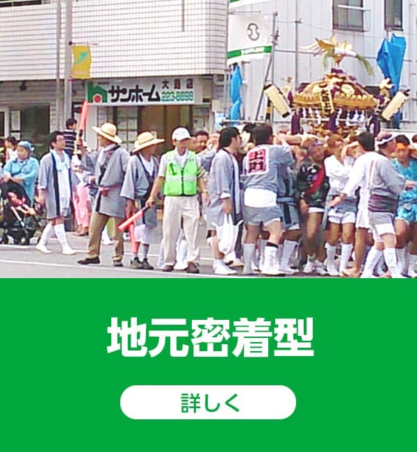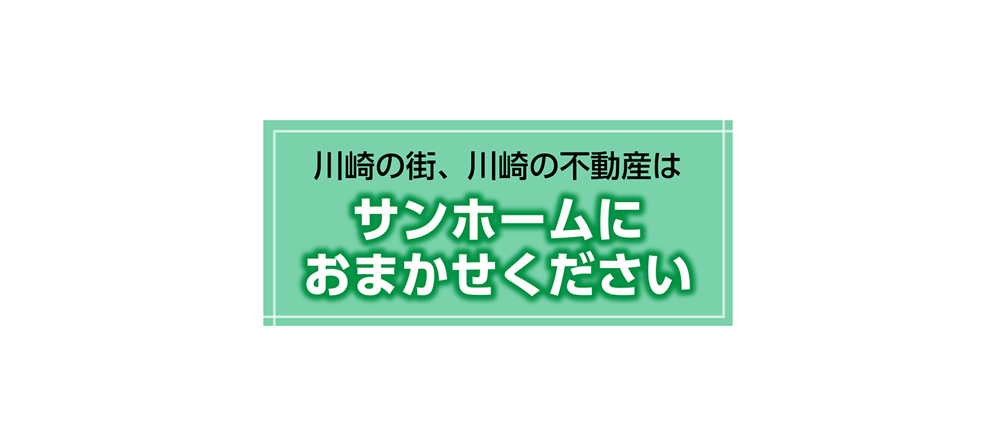 「サンホーム」は川崎区内に7店舗を構え、個人・法人を問わず、京浜エリア(川崎市~横浜市~東京都城南エリア)までの幅広いエリアをカバーしています。地域密着のネットワークで不動産市況はもちろん、地元の情報もしっかりとキャッチし、お客様と話し合って決めた計画をスピーディーに情熱を持って、期待に必ず応えていくことを目指しています。その結果、数多くの売買・賃貸仲介取引、賃貸管理物件のご依頼を頂いてまいりました。これは、「サンホーム」が地元の皆さまに選ばれてきた証であり、地域密着の情報力と販売力には自信があります。