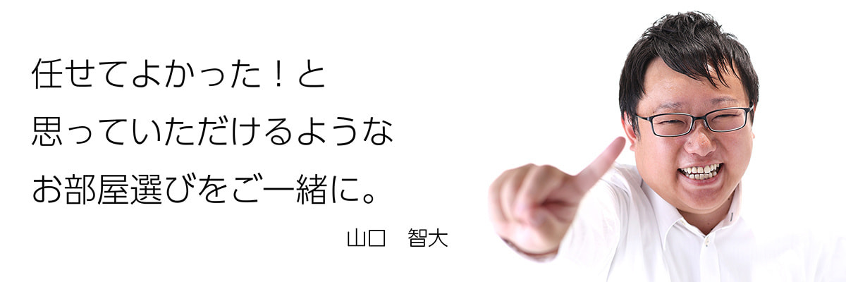不動産は人生の中でも、一際大きなお買い物の一つです。そのような一大イベントで、山口に任せてよかった!と思っていただけるような営業を心がけております。流行りの言葉ではありますが、「お客様ファースト」で誠心誠意、お家探しのお手伝いをさせていただきます。